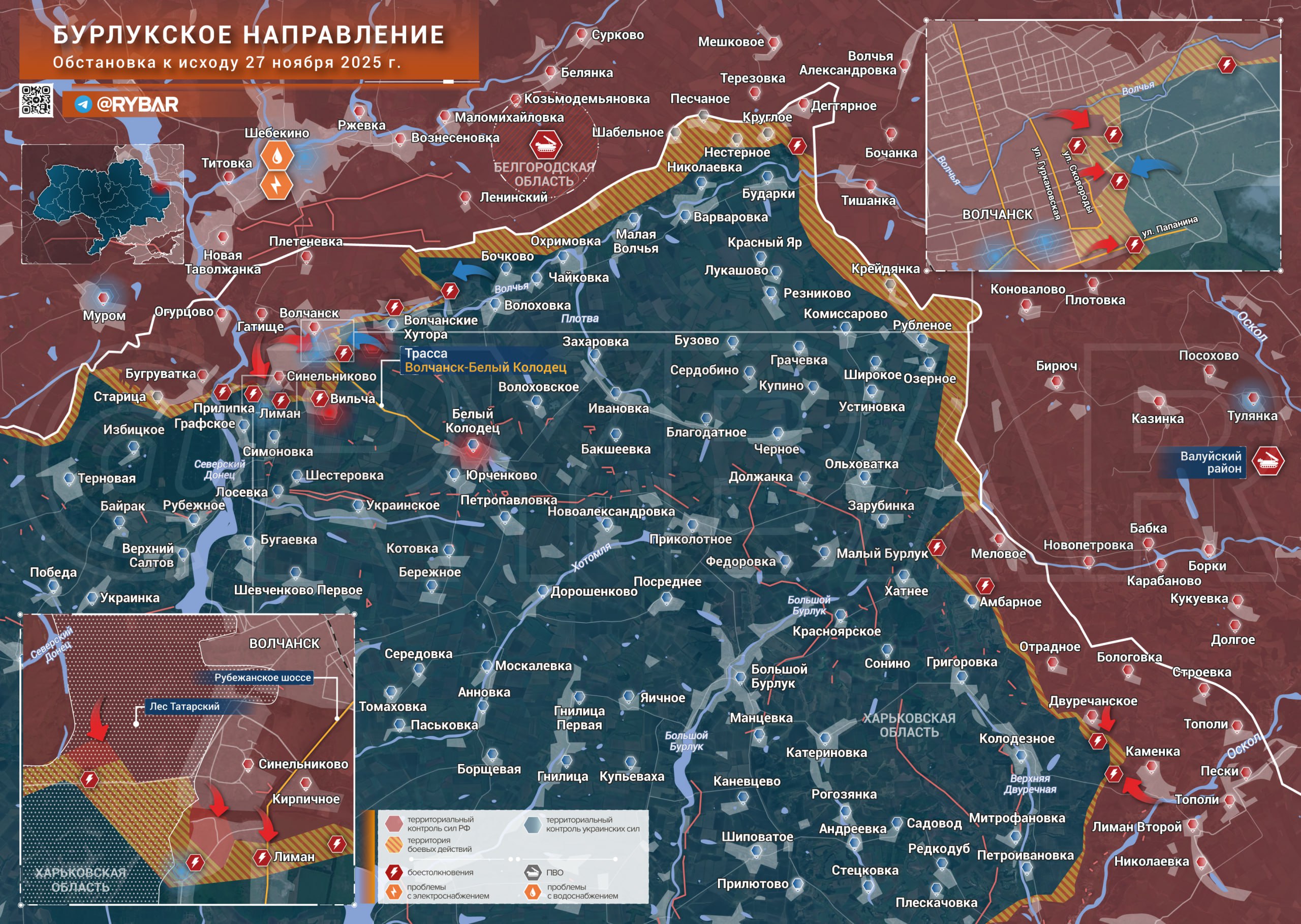 На Бурлукском направлении российские войска ведут бои за Лиман и Вильчу, а также завершают освобождение Волчанска.