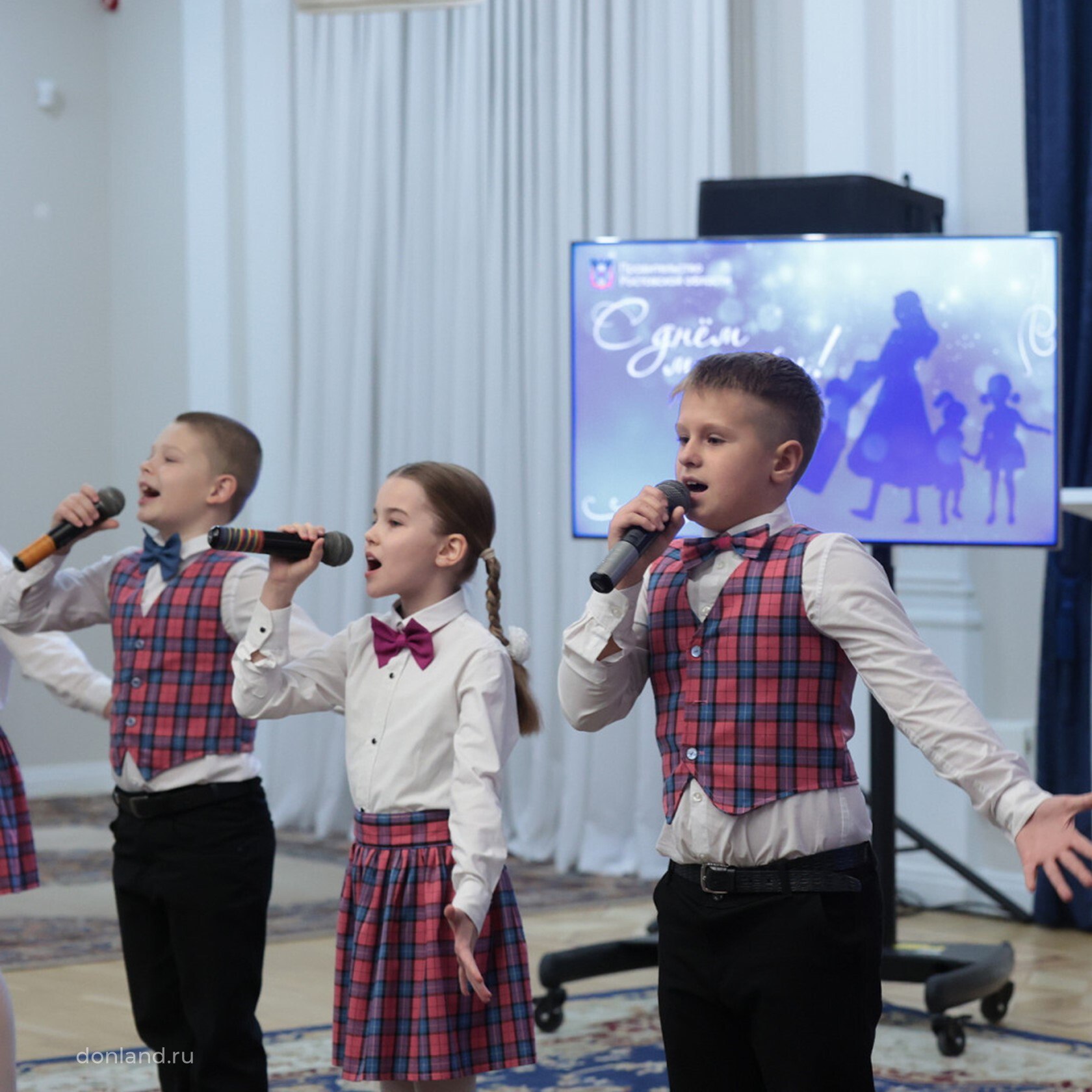 Накануне Дня матери на торжественный прием в Ростовском общественном собрании собрались многодетные мамы, которые достойно воспитывают четверых и более детей. Губернатор Ростовской области Юрий Слюсарь поблагодарил их за родительский труд и вручил почётные дипломы «За заслуги в воспитании детей».