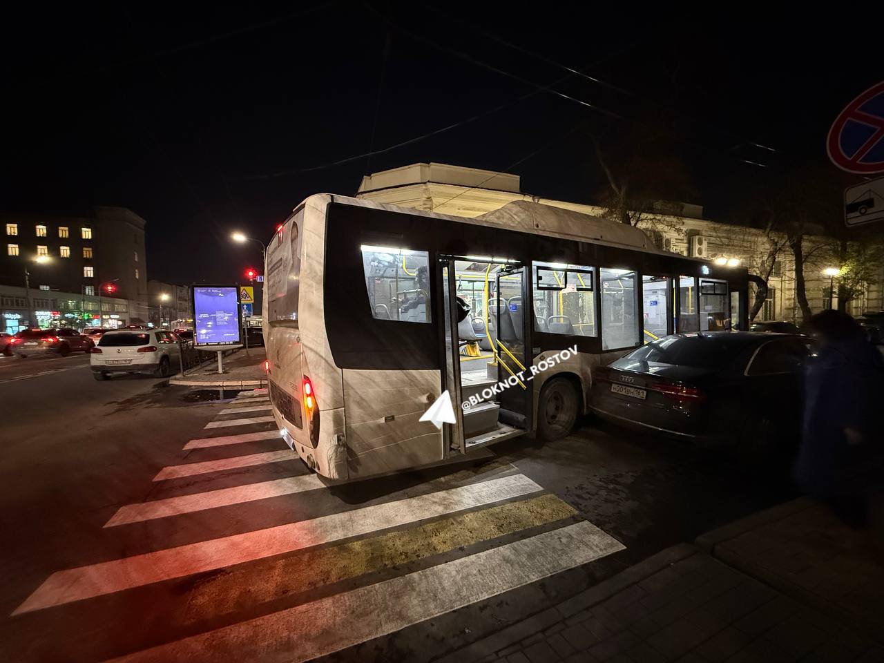 Вечером в Ростове произошло ДТП с участием пассажирского автобуса. Водитель автобуса задел припаркованную Audi при повороте на улицу Московскую.