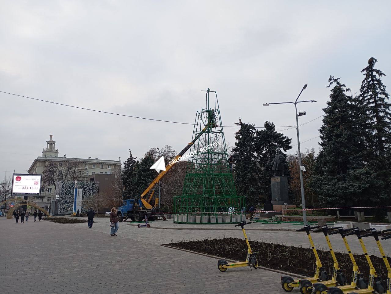 Металлический каркас новогодней ёлки почти полностью установлен. Осталось закрепить «хвою» и приступить к украшению.