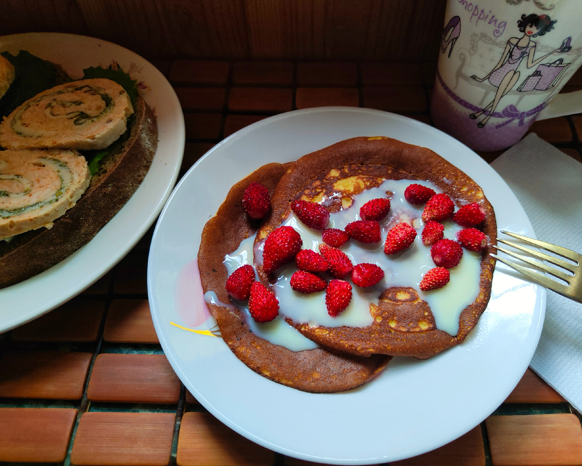 Завтрак в этот день начался с банановых панкейков, дополненных сладкой сгущенкой и ароматной земляникой. Настоящее удовольствие! К этому угощению подавали кофе с молоком и аппетитные бутерброды, которые готовились из домашней горчицы, свежих листьев салата и рулета из курицы с яйцом и шпинатом. Разнообразие вкусов поднимало настроение и дарило заряд бодрости на весь день.