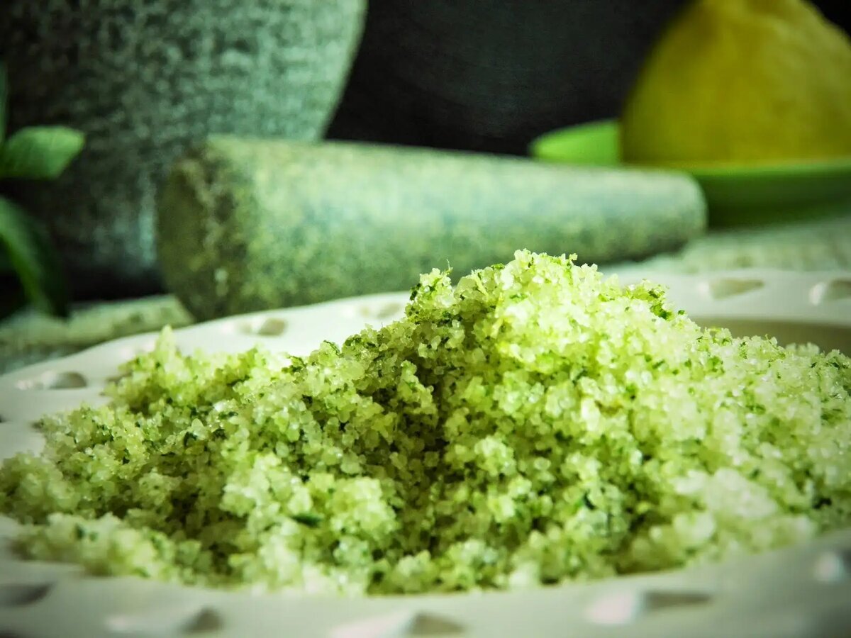 - Мятный сахарный концентрат: Для начала нужно тщательно промыть и обсушить свежую мяту. Затем ее следует растереть в ступке или любой другой подходящей посуде, чтобы максимально выделить сок. На этом этапе важно не использовать блендер, так как из-за дополнительного сока может получиться соус вместо сахара. После этого мяту соединяют с сахаром и оставляют для впитывания аромата.