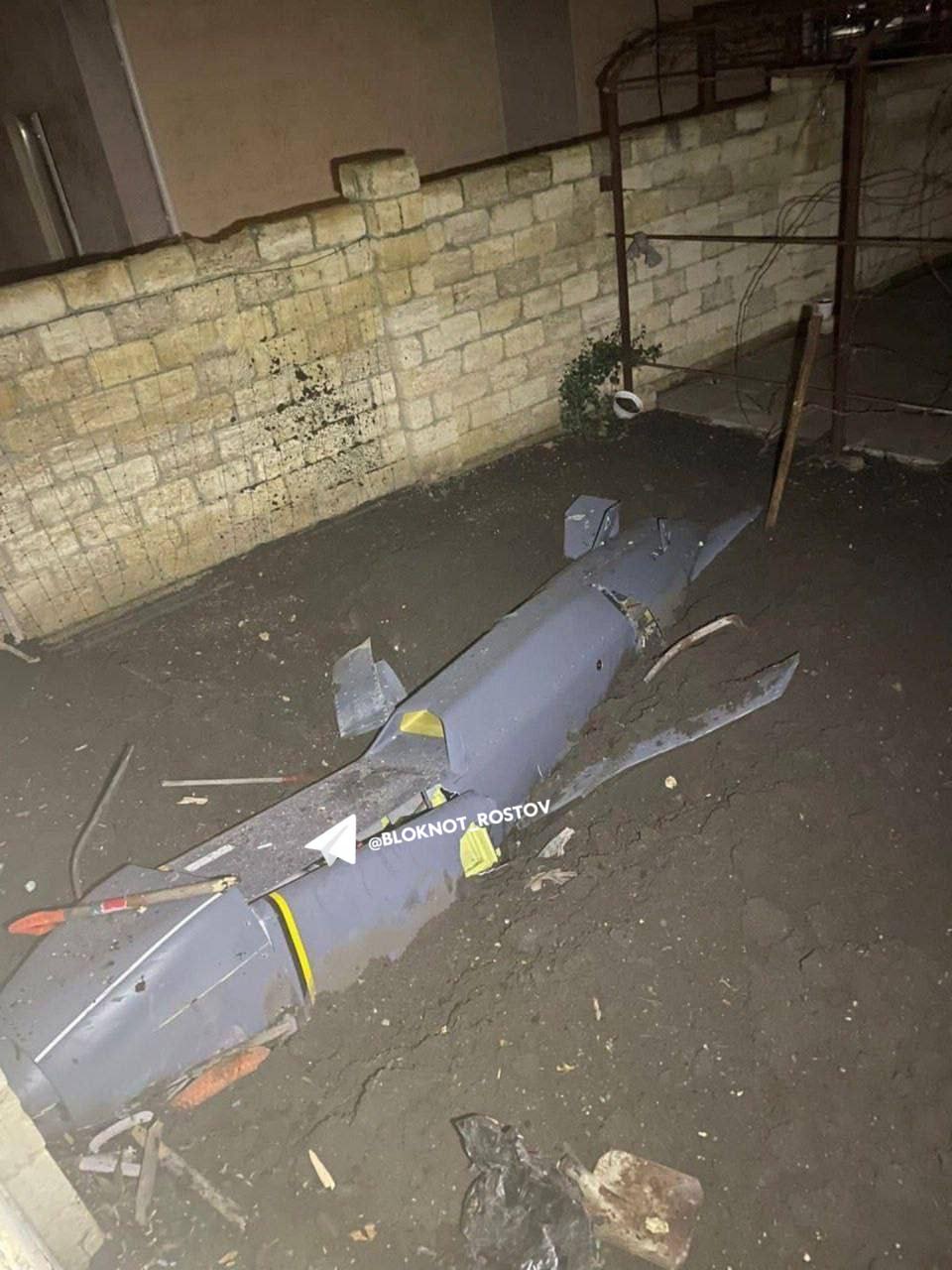 По имеющейся информации, ракета упала во дворе жилого дома. Местоположение инцидента и его обстоятельства пока не разглашаются. Боеприпас не взорвался, а отсутствие крыльев на опубликованных фотографиях может указывать на работу систем ПВО.