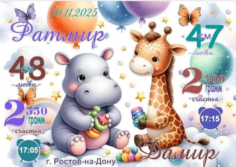 4 декабря зарегистрирована 10-я, юбилейная пара новорожденных с начала 2025 года. Семейная пара, Станислав и Карина, стали родителями двух мальчиков, которым дали мена Ратмир и Дамир.