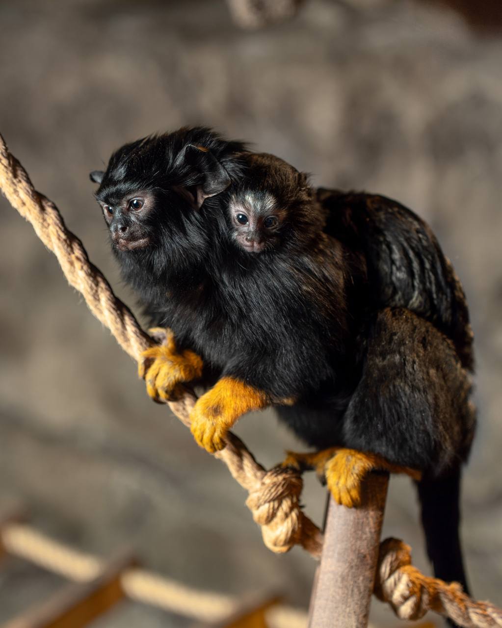 Парк «Лога» поделился снимками, которые вызывают приступ умиления: крошечные тамаринчики крепко обнимают своих родителей. Детенышам уже полтора месяца, но самостоятельно они пока не передвигаются — исследуют мир, сидя на спине папы или мамы.