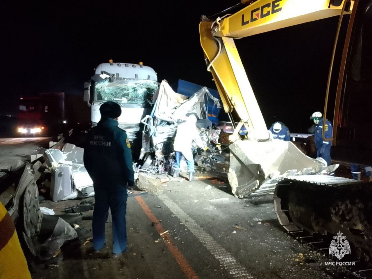 Новые кадры появились с места аварии на М-4 "Дон" в Красносулинском районе. Чтобы ликвидировать последствия ДТП с двумя фурами, понадобилась помощь спасателей.