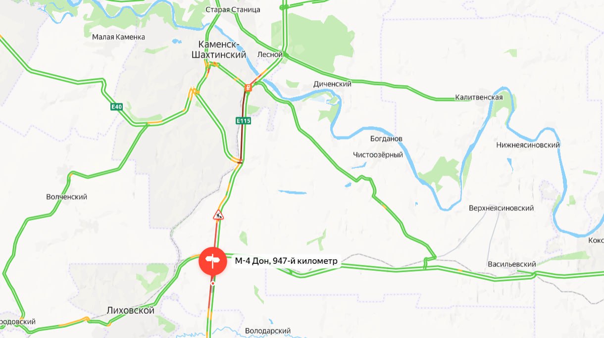 Съезд на 944 км (развязка в п. Обуховский) через мкр. Лиховской, далее через Зверево и Гуково с выездом на М-4 на 960 и 965 километрах.