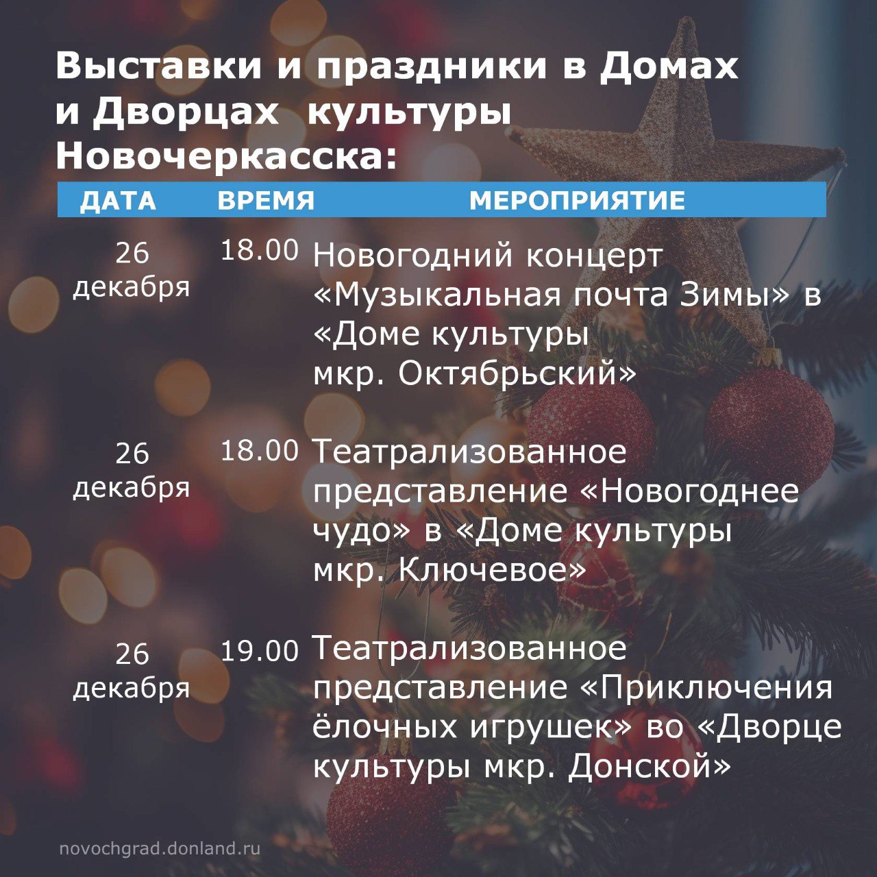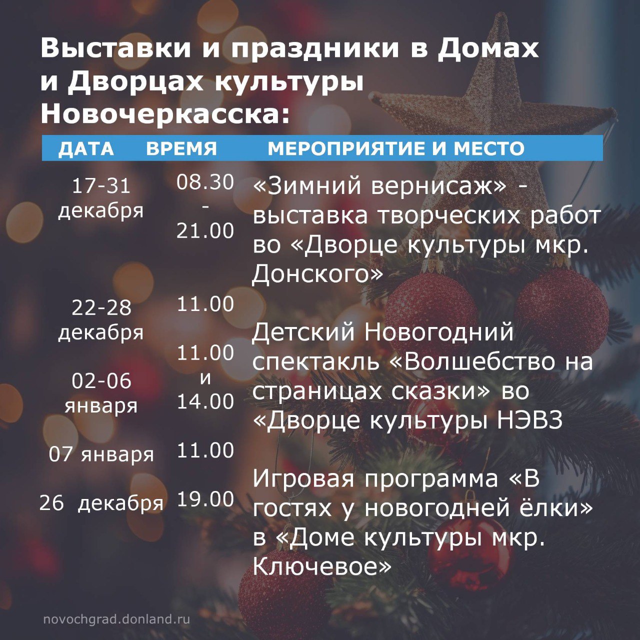 Полная афиша мероприятий доступна по ссылке: https://novochgrad.donland.ru/presscenter/events/22264/