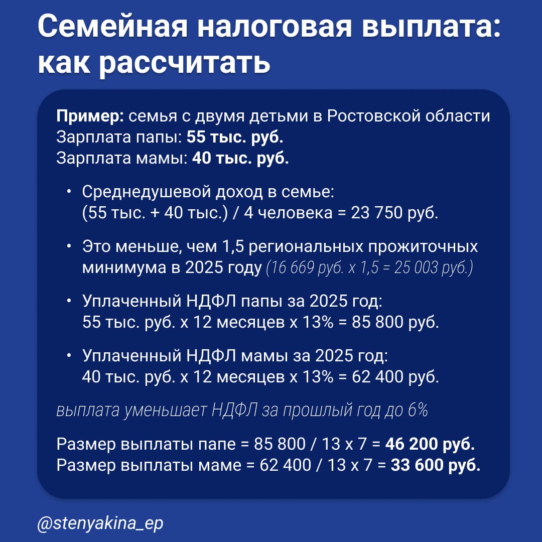 Вчера рассказывала вам о семейной выплате для работающих родителей двух и более детей. С 2026 года она будет положена семьям, в которых среднедушевой доход не превышает 1,5 регионального прожиточного минимума.