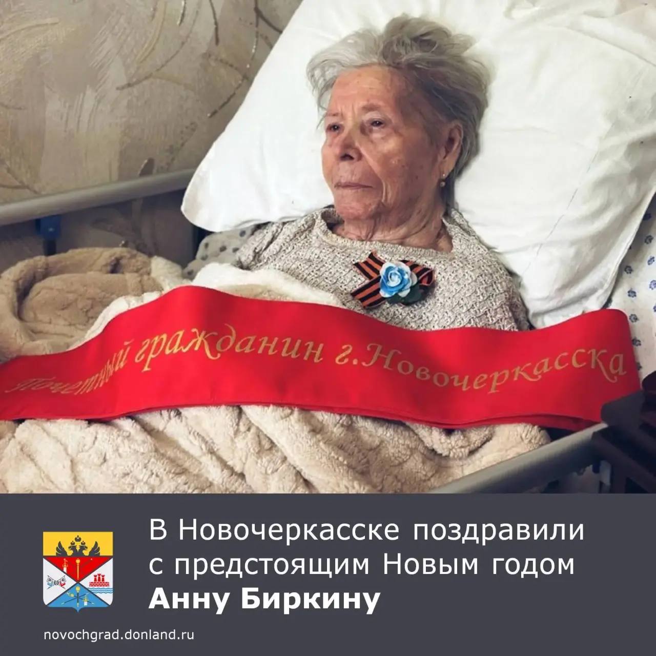 Исполняющая обязанности заместителя главы администрации Новочеркасска Марина Суздаль поздравила почётного гражданина Новочеркасска Анну Яковлевну Биркину с предстоящим Новым годом.