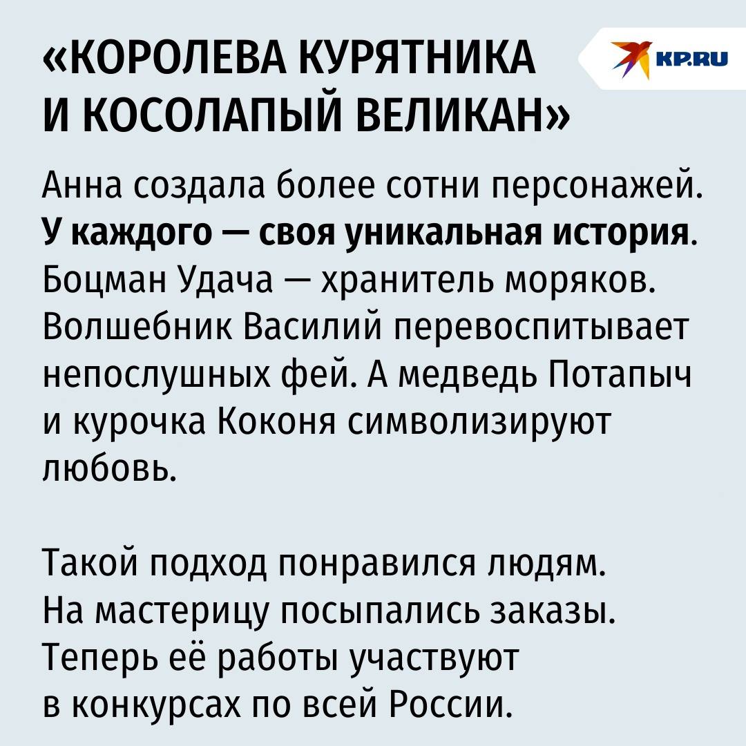 На протяжении десяти лет мастерица из Ростова создает уникальных авторских кукол. Среди работ Анны невозможно найти привычных барышень в пышных платьях. Игрушки мастерицы — это сказочные персонажи и фантазийные герои с собственной историей.