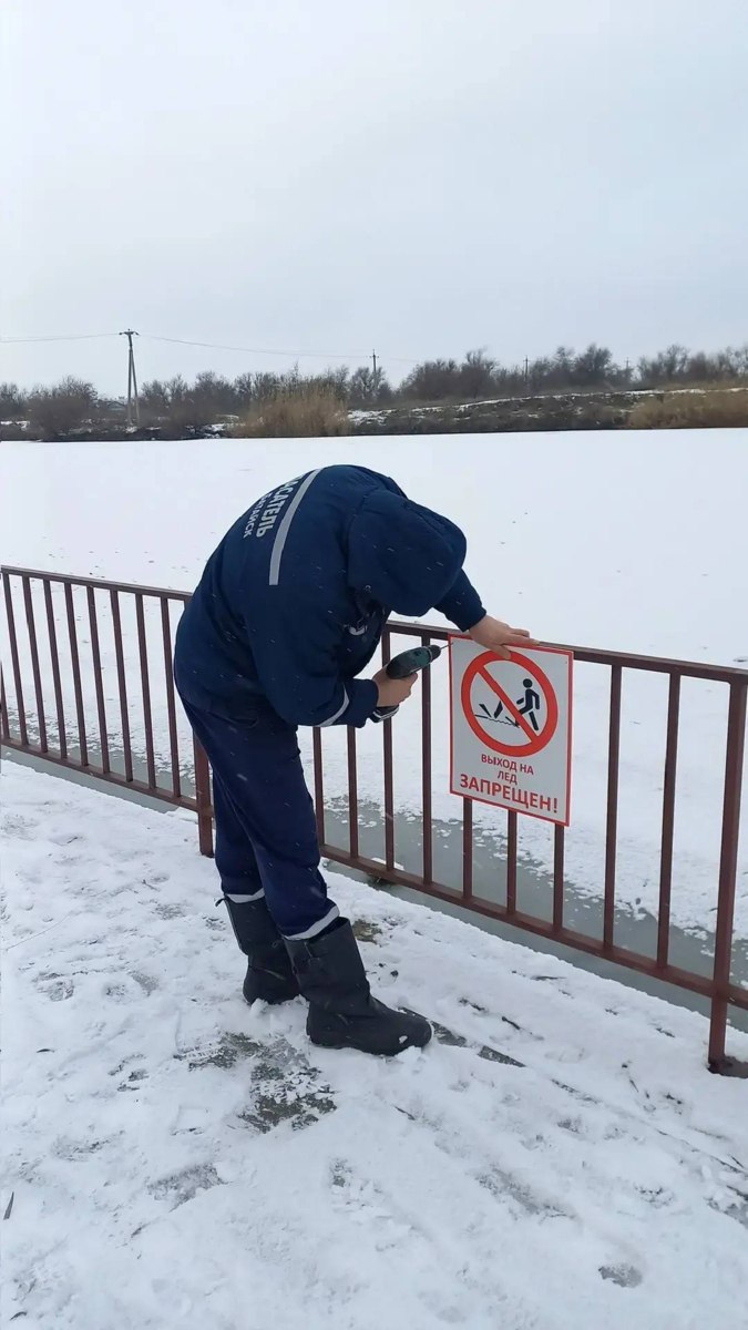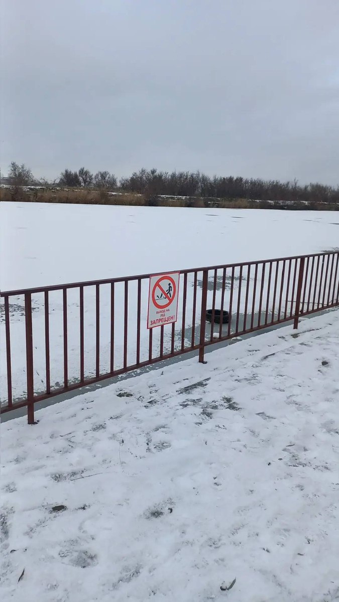 Спасатели МБУ «Защита» объехали город и установили предупреждающие знаки «Выход на лёд запрещён» на водоёмах.