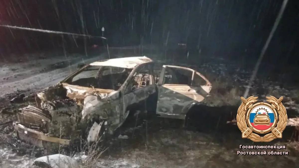 Авария случилась 4 января в 19:00 на 151-м километре дороги Ростов-Семикаракорск-Волгодонск. По предварительным данным, 25-летний водитель Mercedes-Benz не справился с управлением из-за сильного дождя и съехал с проезжей части. После этого автомобиль загорелся.