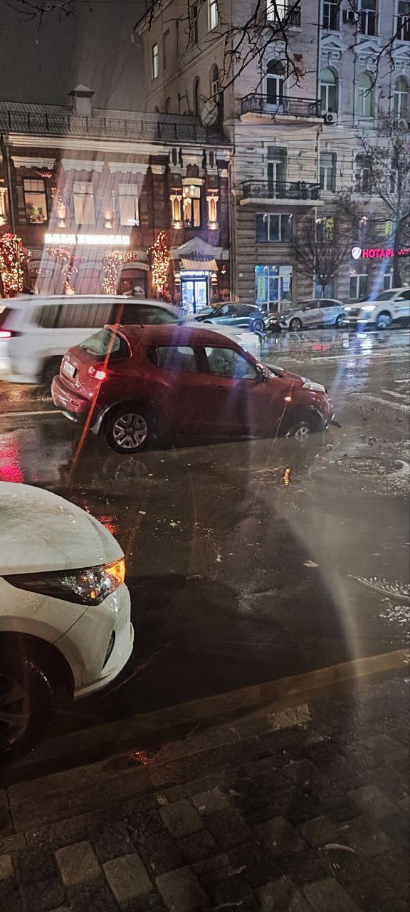 Машина провалилась под асфальт на Буденновском в Ростове