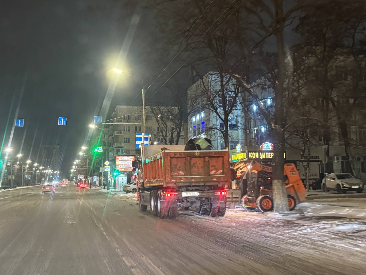 На улицы Ростова вышло 98 единиц техники, включая 72 комбинированные дорожные машины, а также погрузчики и самосвалы. Более 100 уборщиков территорий также трудятся на улицах. Дороги и тротуары обрабатываются реагентами для борьбы с гололедом.