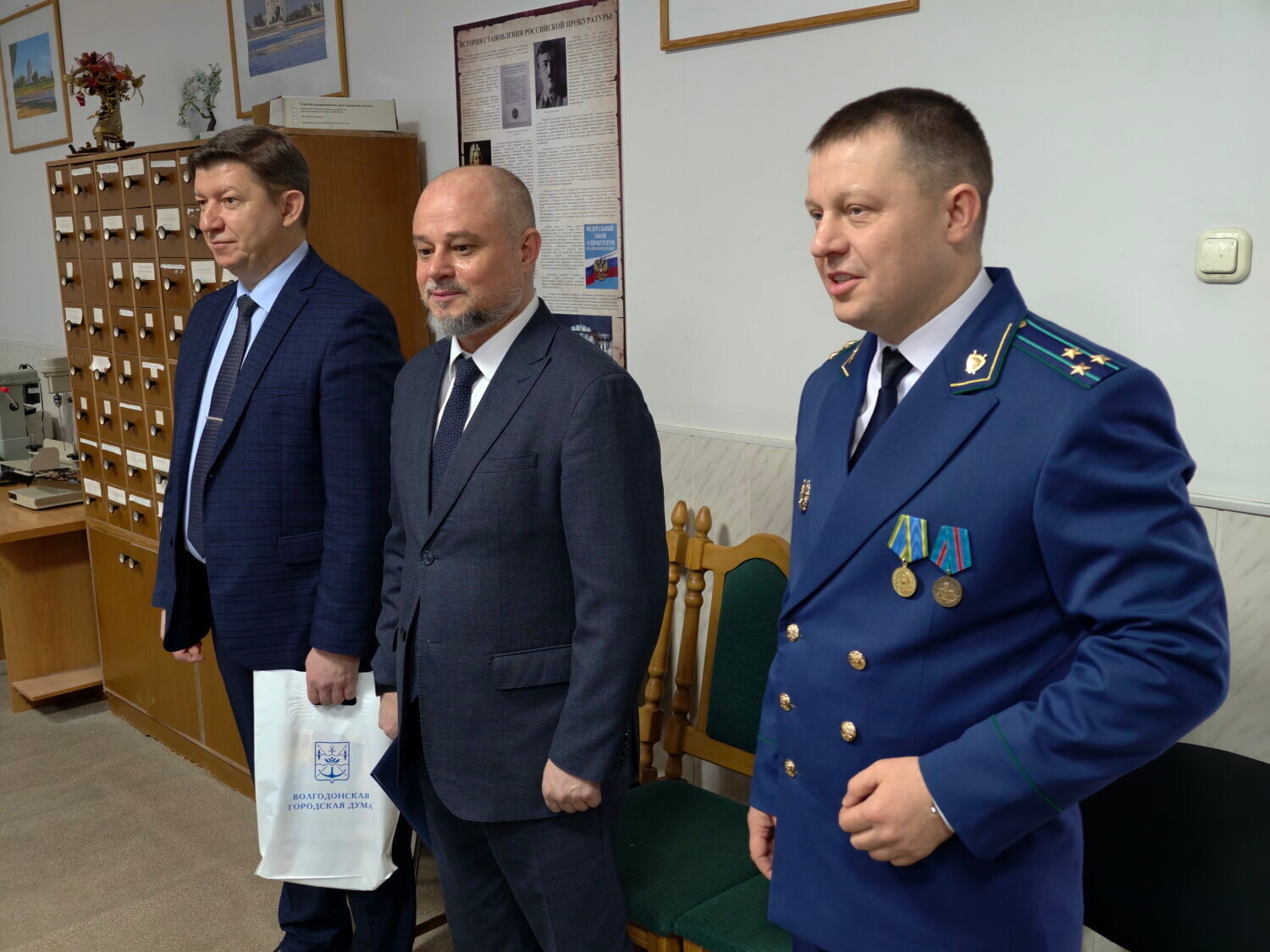 12 января, в День работника прокуратуры, Глава Волгодонска Дмитрий Вельможко и председатель гордумы Сергей Ладанов посетили городскую прокуратуру для поздравления коллектива.