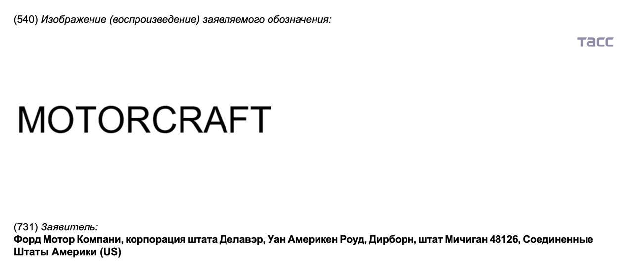 Автопроизводитель Ford Motor Company подал три заявки на регистрацию товарных знаков в России, выяснил корреспондент ТАСС.