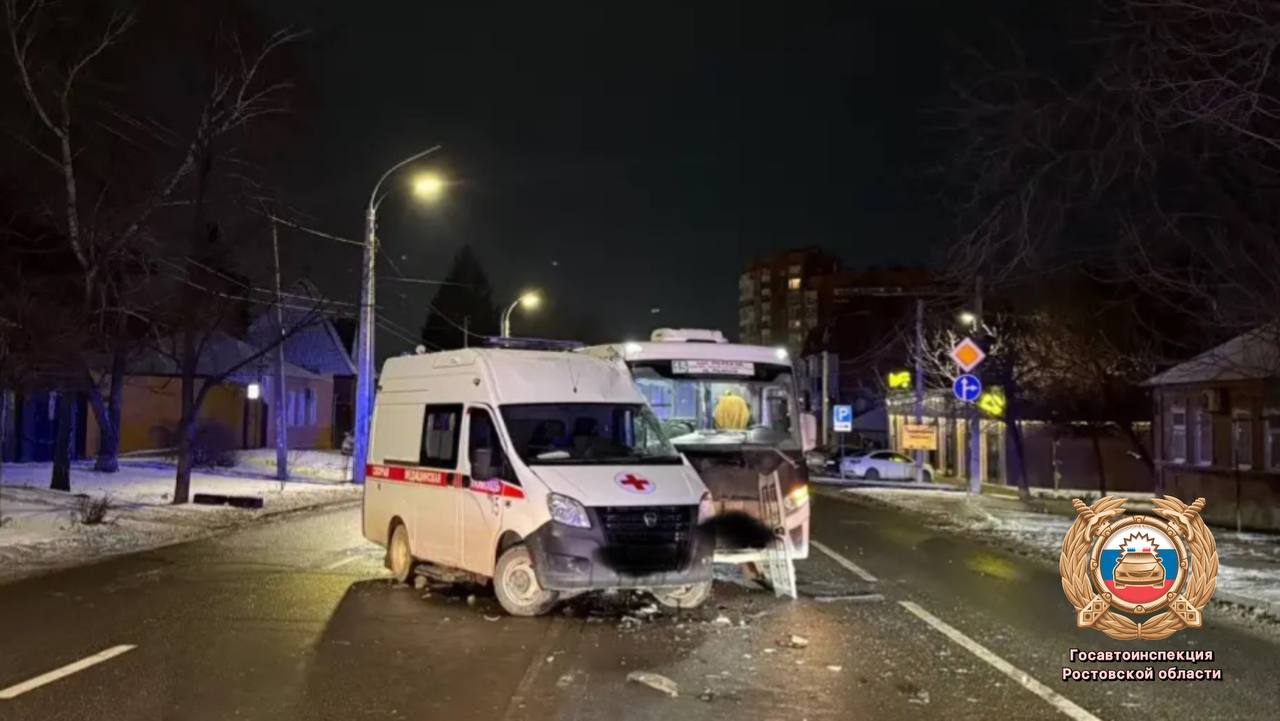 Автобус с пассажирами и скорая попали в ДТП в Ростове