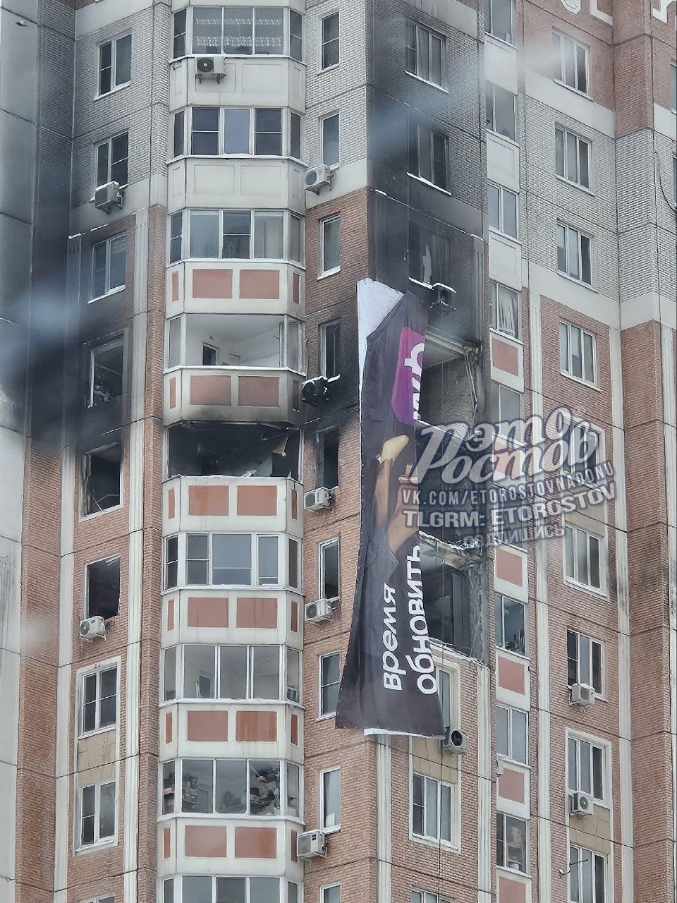 В Ростове-на-Дону место взрыва в Левенцовке, в результате которого ранее погиб мужчина, прикрыли крупным рекламным баннером.