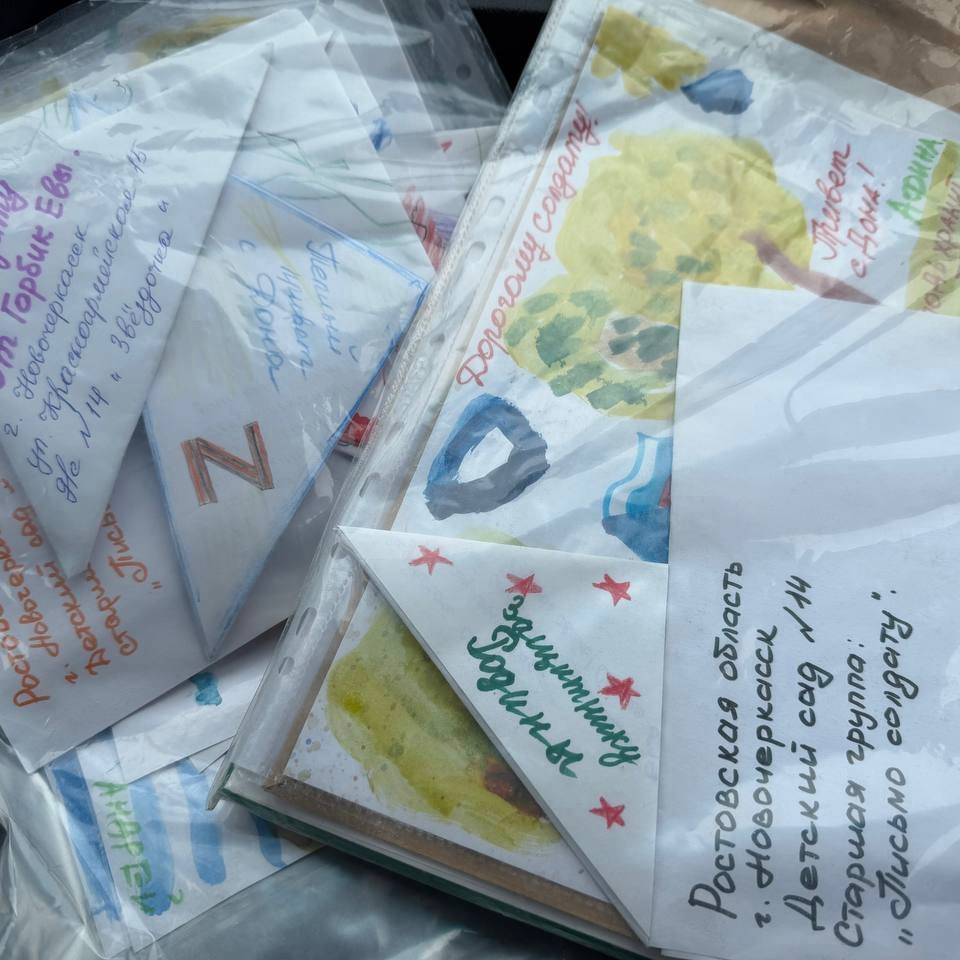 Также в посылки для военнослужащих добровольцы положили письма с тёплыми пожеланиями и поздравлениями, авторами которых стали дети зимой, параллельно с плетением сетей, новочеркасские мастерицы вяжут носки — уже больше тысячи пар за три года. А волонтёры дополняют эти посылки практичной помощью: наколенниками и резиновыми сапогами для отправки «за ленточку».