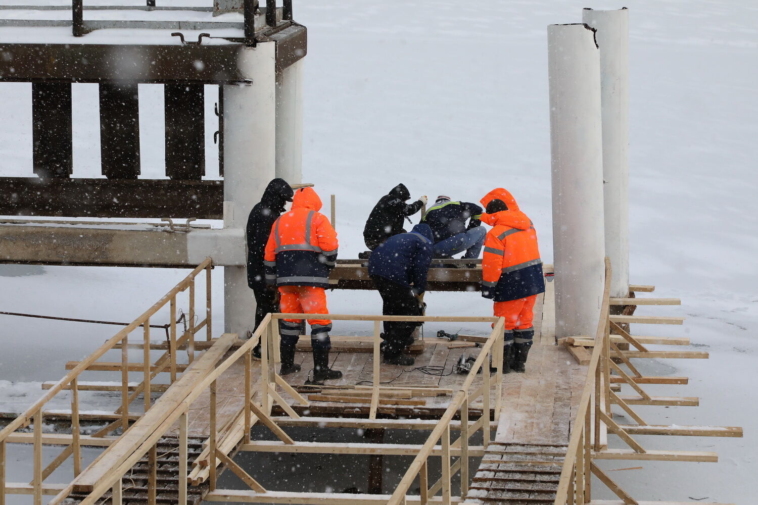 В течение недели водолазы обследовали дно, был смонтирован прочный настил для купели глубиной около 1,5 метра, установлены безопасные спуски, обработанные противогололедным составом. Территорию полностью очистили от снега, организовали освещение и тёплые раздевалки.