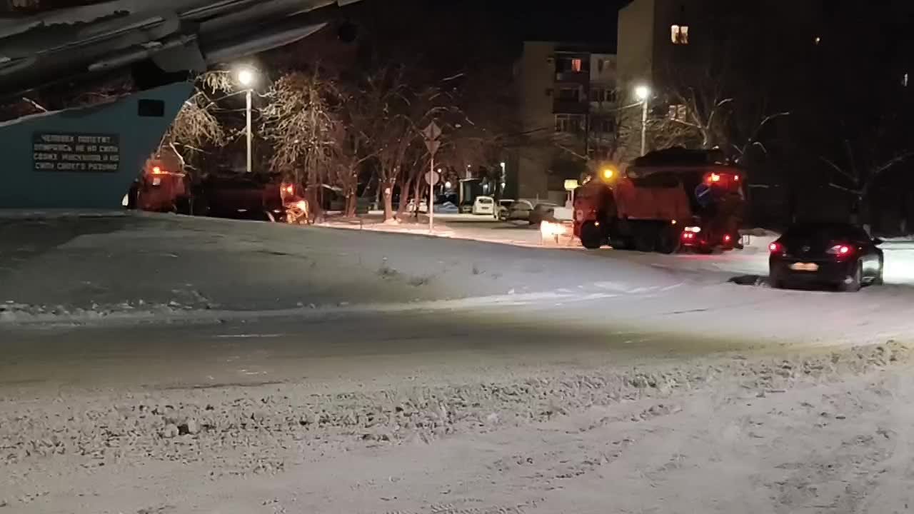 В ночь с 15 на 16 января на улицах города работало 6 единиц комбинированных дорожных машин во всех районах, работы продолжаются