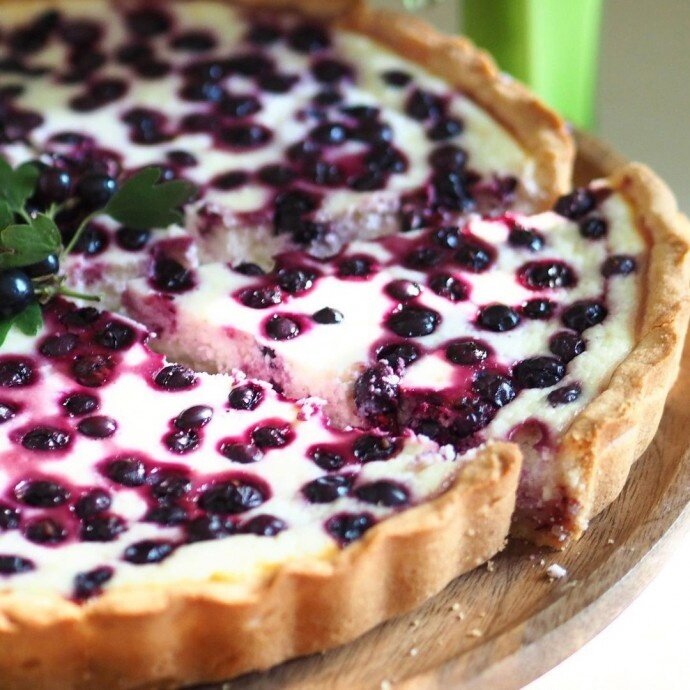 Песочный пирог с творожной начинкой и черной смородиной