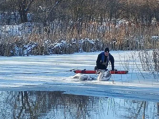 Сотрудники службы спасения добрались до замерзающего лебедя и эвакуировали его. Сейчас «хранитель верности» в безопасности — его передали специалистам для восстановления.