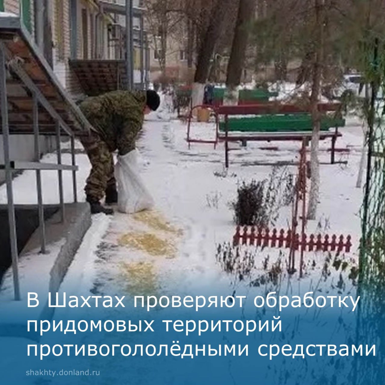 В поселке ХБК специалисты инспекционного отдела проверили, как управляющие компании выполняют обработку придомовых территорий средствами пескосоляной смесью.