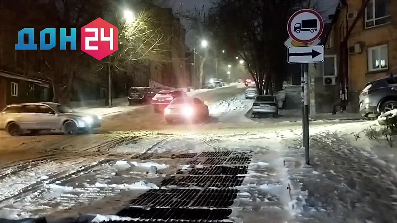 На улице Ставского некоторые автомобили не справляются с дорожными условиями и не могут преодолеть подъём.
