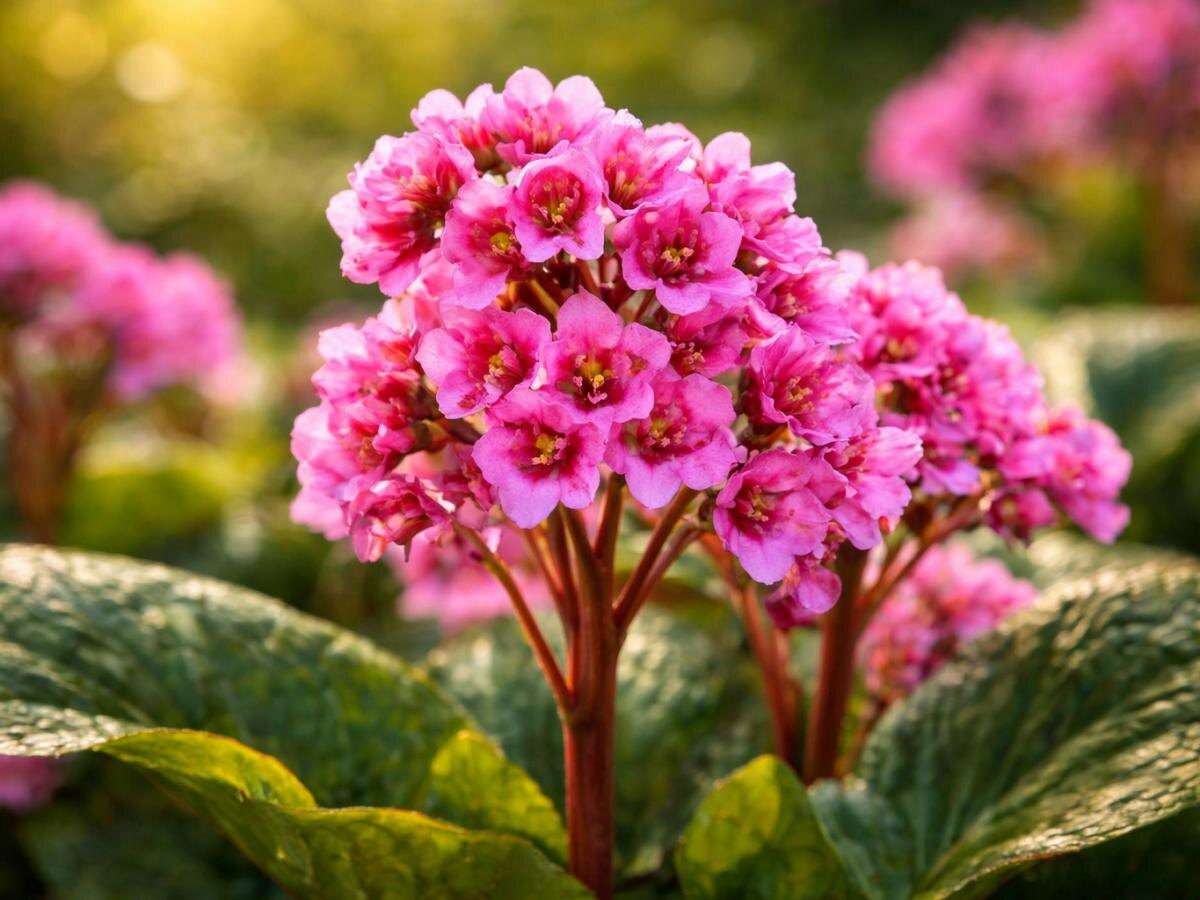 Бадан — это теневыносливый многолетник, отлично приспосабливающийся к условиям плохого освещения. Он формирует плотные куртины с крупными, блестящими листьями, которые остаются красивыми даже без регулярной обрезки. Весной растения радуют глаз своими яркими цветами, а осенью их листья приобретают глубокие бордовые тона, добавляя тепла в сад.