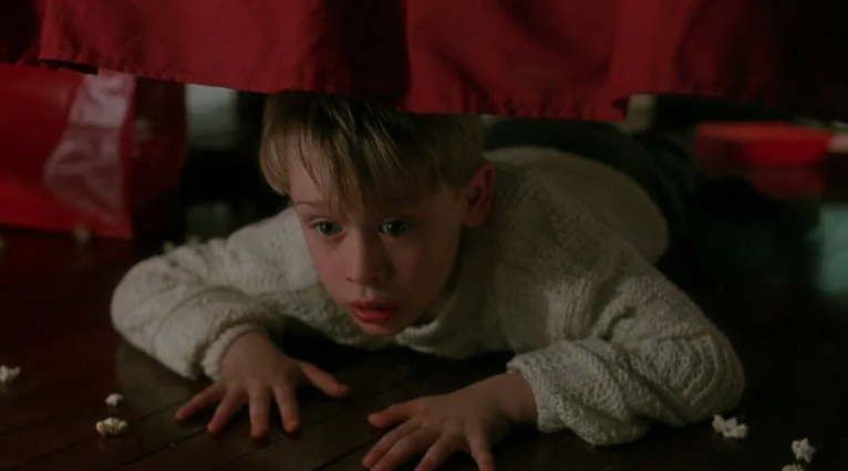 Кевин, случайно оставшийся дома на Рождество, защищает свой дом от грабителей. Идеальная комедия для новогодних вечеринок.