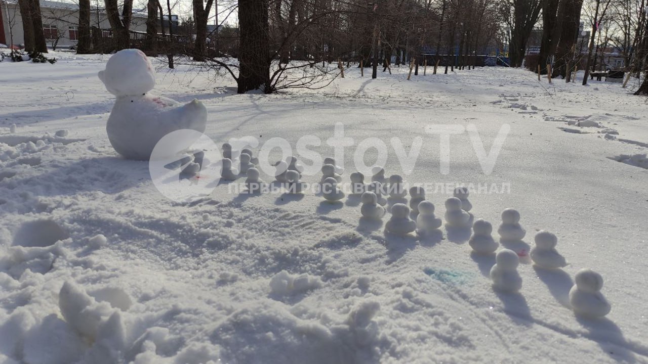 В Дортмундском сквере Ростова появилась снежная композиция с мамой уткой и 25-ю утятами. Наш корреспондент Марина Черных не смогла пройти мимо такой милоты, поэтому будете у нас на Колыме в тех краях — милости просим полюбоваться на скульптуру.