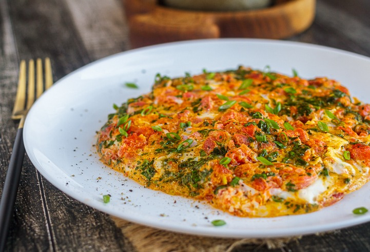 Сначала подготовьте помидоры: обдайте их кипятком, чтобы легко снять шкуру, а затем мелко нарежьте.В отдельной посуде аккуратно взбейте яйца с нарезанной зеленью и щепоткой соли, не стремясь добиться идеальной однородности.На среднем огне разогрейте сковороду и растопите в ней масло. Затем добавьте лук, нарезанный мелкими кубиками, посолите и обжаривайте 2-3 минуты до прозрачности.Добавьте к обжаренному луку нарезанные помидоры, увеличьте огонь и готовьте несколько минут, постоянно помешивая.Когда выделившаяся жидкость практически испарится, уменьшите огонь и влейте яичную массу с зеленью. Спустя минуту перемешайте, накройте крышкой и дайте блюду потушиться до загустения.Готовое блюдо можно подать в сковороде или аккуратно выложить на тарелки, украсив свежей зеленью и щепоткой черного перца.Это блюдо не оставит равнодушными ни вас, ни ваших близких. Приятного аппетита!
