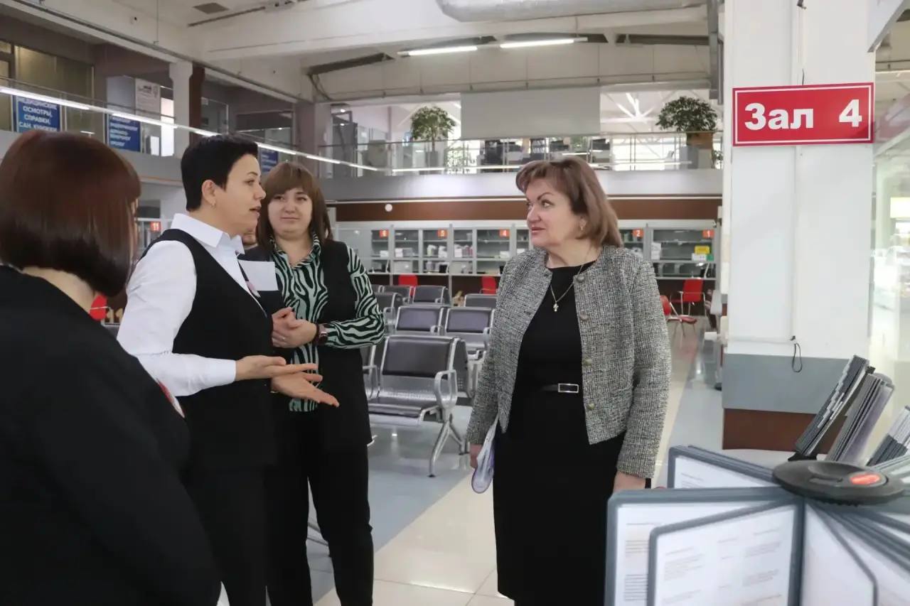 Лично пообщалась с коллективом, встретилась с сотрудниками центра. Руководитель МФЦ Ирина Зверева доложила о достигнутых показателях за 2025 год, вот некоторые из них: