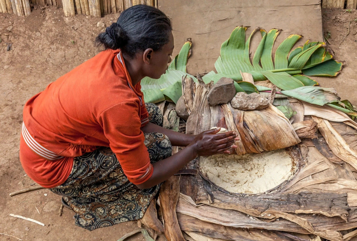 В Восточной Африке, где климатические условия часто неблагоприятны для выращивания привычных культур, энсета оказывается настоящим спасением. Она устойчива к болезням и вредителям, не требует постоянного ухода и может расти без частых дождей. Фермеры ценят возможность сбора урожая по мере необходимости, что делает её важным ресурсом.