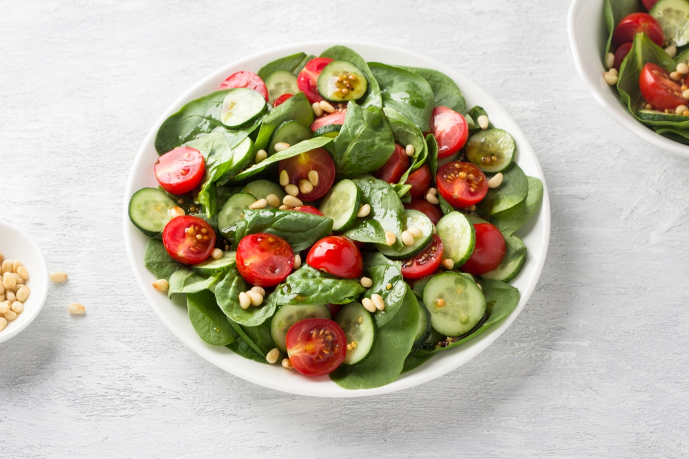 Что касается помидоров, лучше всего подойдут черри; их можно заменить на мясистые сорта с помощью обычных томатов. Огурцы выбирайте нежные, с тонкой кожицей.