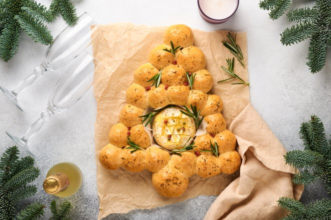 4. На противне булочки выкладываются в виде елочки, начиная с одной верхушки, добавляя ряды по два, три, четыре и пять. Небольшие кусочки могут послужить «стволом». Накрываем и оставляем подходить на 20–25 минут.