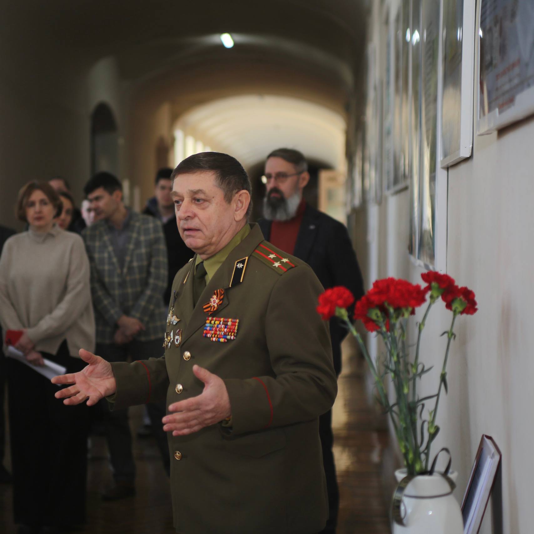 На церемонии присутствовали мама героя Галина Васильевна, председатель Совета ветеранов Новочеркасска Виктор Буров, преподаватели, студенты и сотрудники вуза.