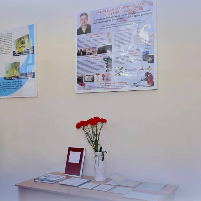В Новочеркасском инженерно-мелиоративном институте Донского ГАУ состоялось торжественное открытие мемориального стенда, посвящённого выпускнику Дмитрию Матвееву, погибшему при выполнении боевого задания в зоне СВО.