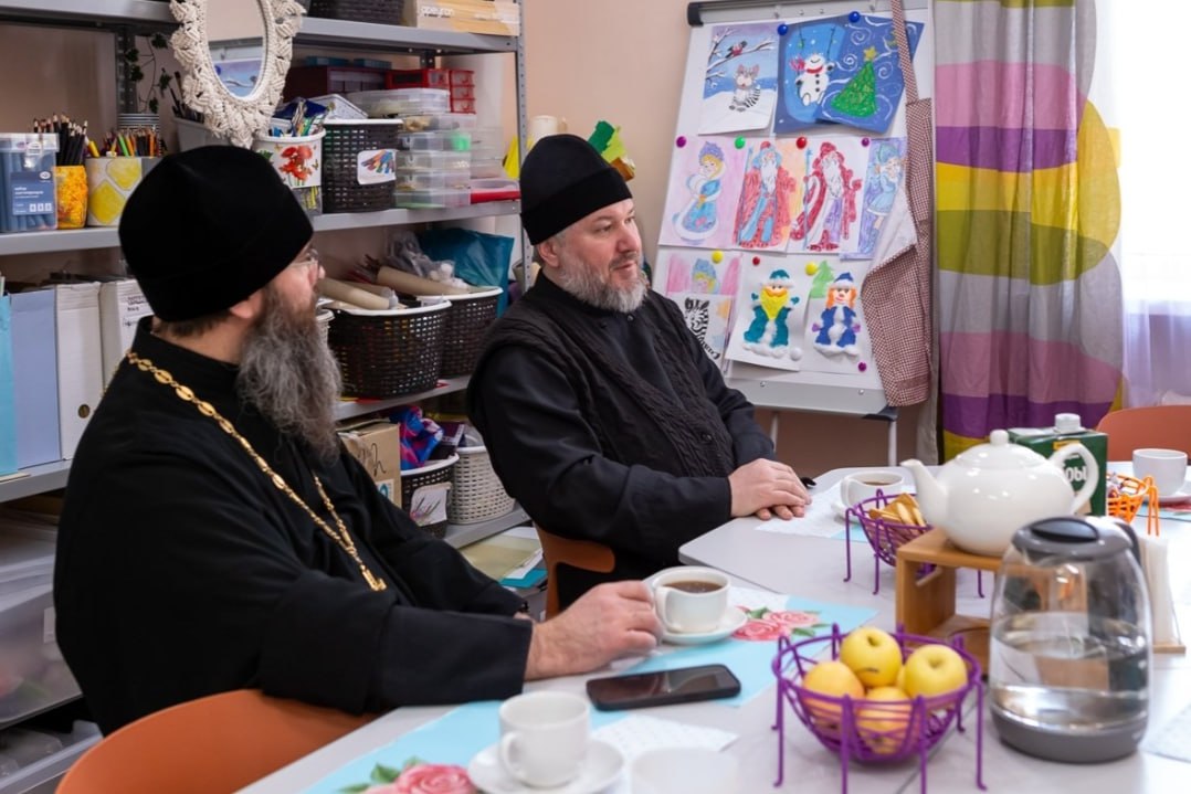 Епископ Шахтинский и Миллеровский Симон посетил Добро.Центр «Финист». Его сопровождали настоятель Покровского кафедрального собора Иерей Александр Теличкин и руководитель епархиального отдела Шахтинской епархии по взаимодействию с учреждениями культуры диакон Никита Осипов.
