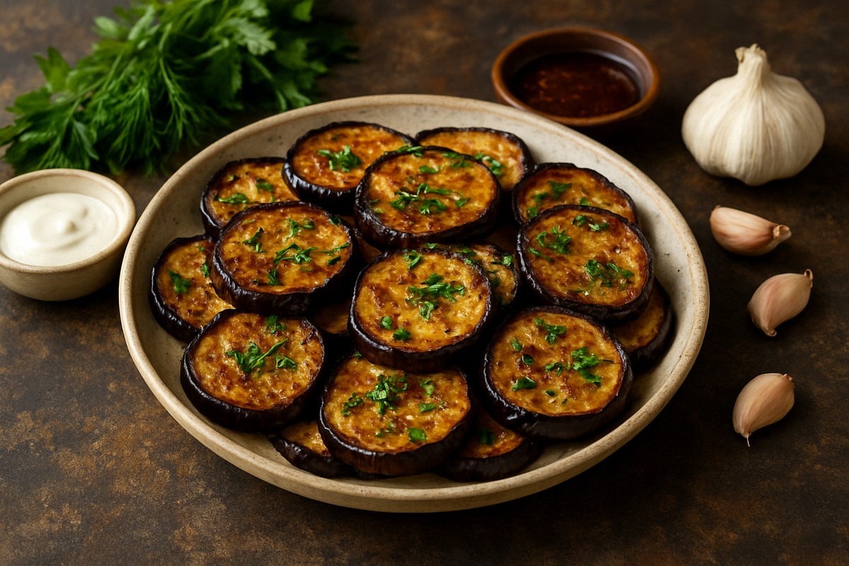 Жареные баклажаны легко адаптируются к разным сочетаниям. Они крепко дружат со свежей зеленью, мягко принимают ароматы чеснока и совершенно спокойно впитывают любой соус — томатный, слегка медовый, кисло-чесночный. Каждый вариант делает блюдо чуть разным на вкус, но суть остаётся: неторопливый, насыщенный ужин при слабом освещении, когда все собираются в одну комнату.