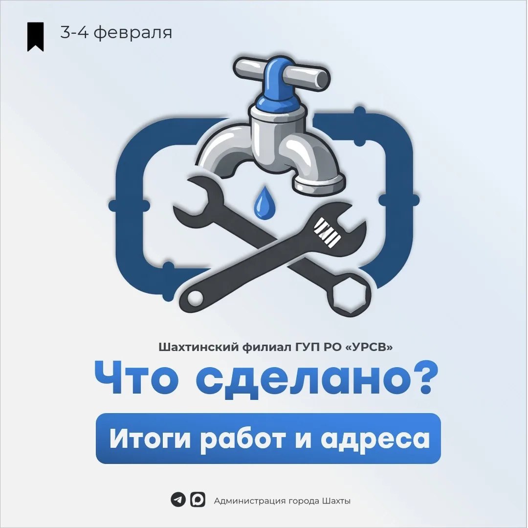 3-4 февраля. Аварийно-восстановительные работы, выполненные бригадами шахтинского водоканала.