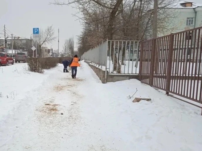 Очищены от снега тротуары на проспекте Карла Маркса и в посёлке Петровка.