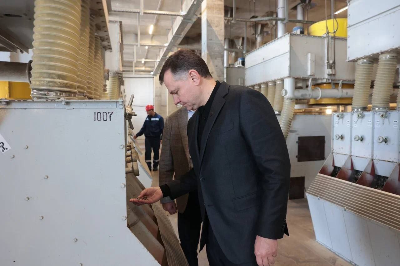 Маслоэкстракционный завод «Троицкий». Здесь начали выпуск продукции. Прежде всего — растительного масла. Для нас это пример организации переработки в сельском хозяйстве. Масло — товар, ориентированный на экспорт. Для бюджета это сотни миллионов рублей налогов, а для района — 250 рабочих мест с высокой зарплатой. Задача власти — создавать комфортные для инвестора условия, чтобы такие проекты развивались.