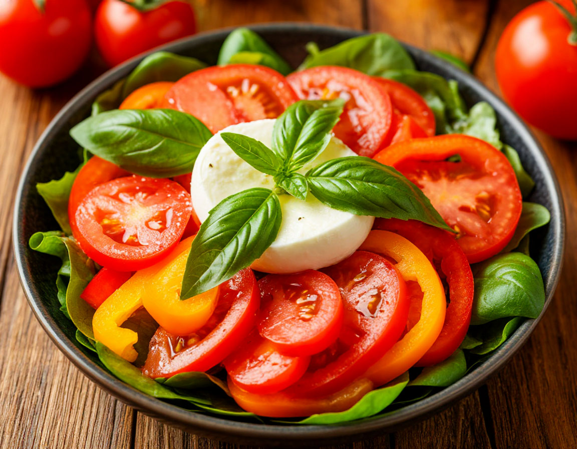 Это простое и яркое блюдо идеально сочетает в себе свежие овощи, сливочную моцареллу и ароматные травы. Для его приготовления подойдут:
