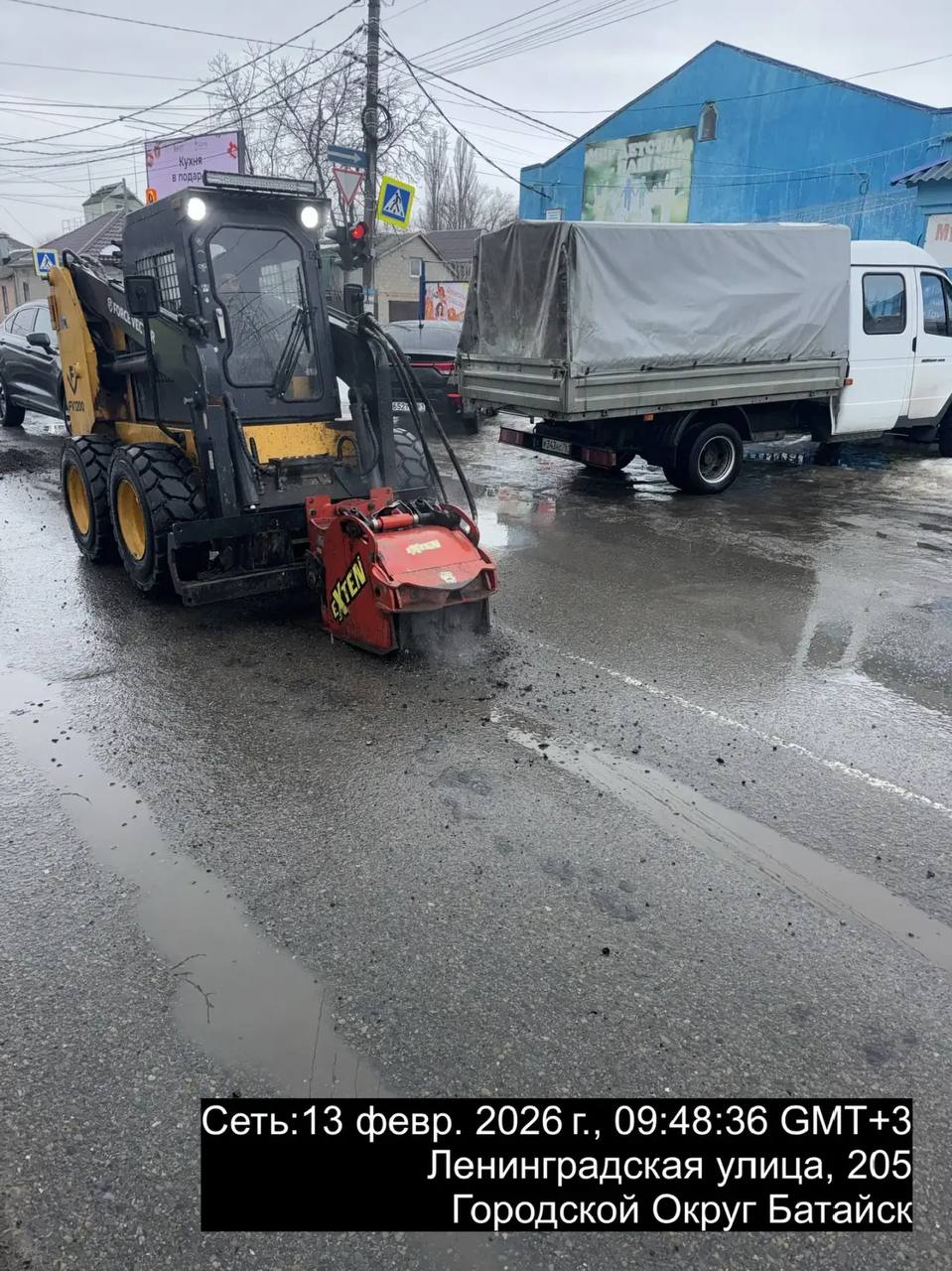 В Батайске стартовал ямочный ремонт по муниципальному контракту от 26 января. При устойчивой плюсовой температуре подрядчик начал первый этап – фрезерование разрушенного асфальта, чтобы подготовить «карты» под укладку нового покрытия.