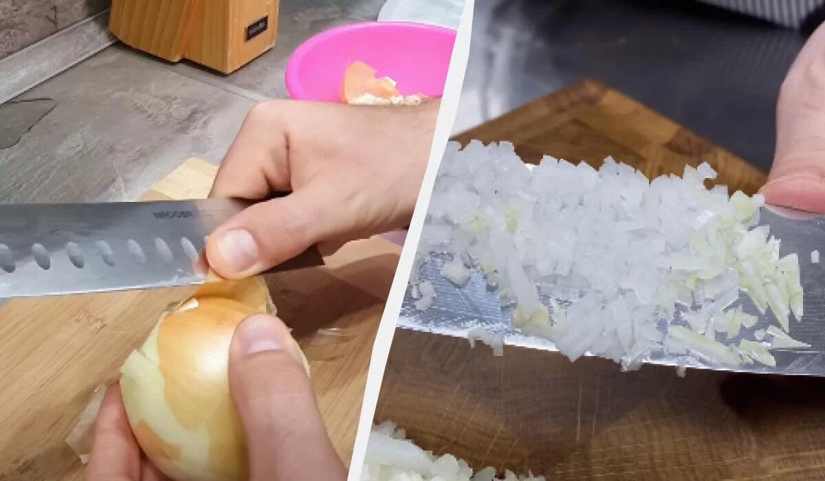 Как нарезать лук кубиками