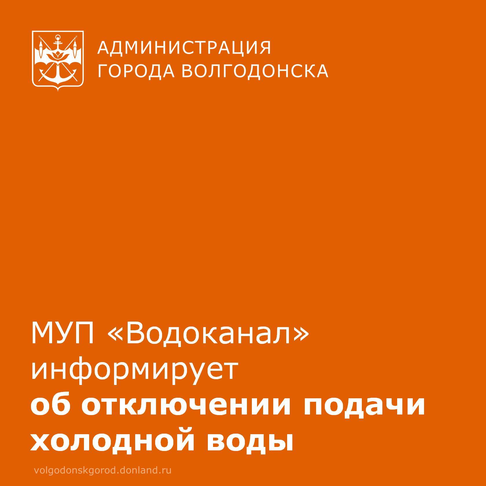 МУП «Водоканал» информирует о том, что 17 февраля с 10:00 до 17:00 в Волгодонске в связи с заменой задвижек ф 300 мм на магистрали М-38 в количестве двух единиц будет прекращена подача холодной воды по следующим адресам: