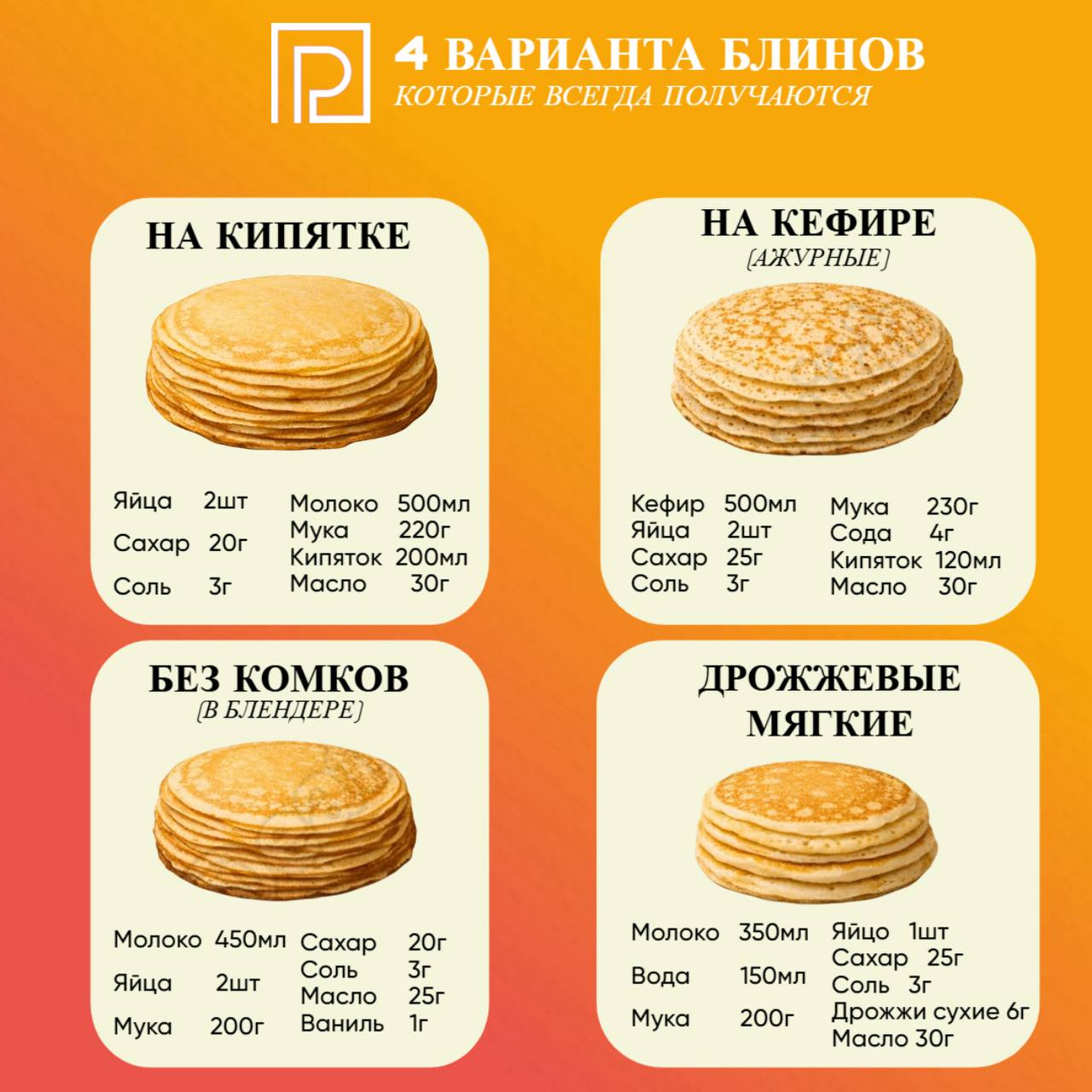 А в подборке ловите рецепты блинов. Главное, не переедайте: чтобы не набрать вес на Масленичной неделе, диетологи рекомендуют есть не больше четырех блинов в день.